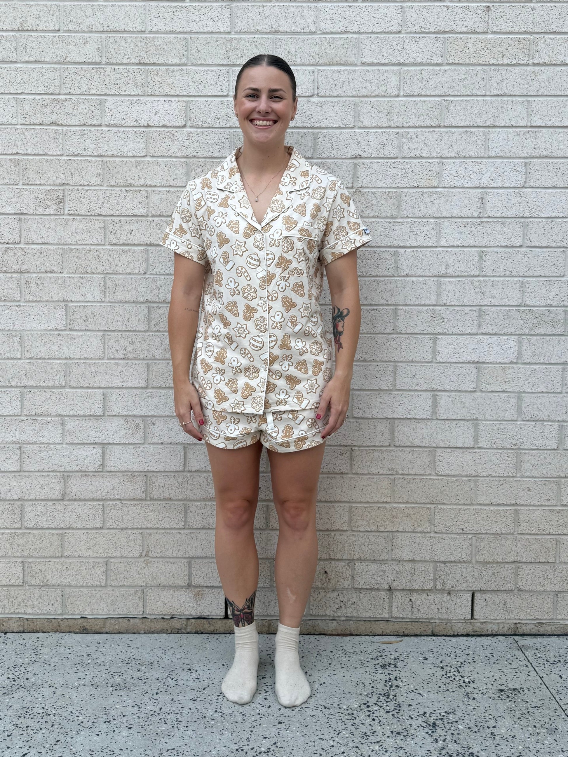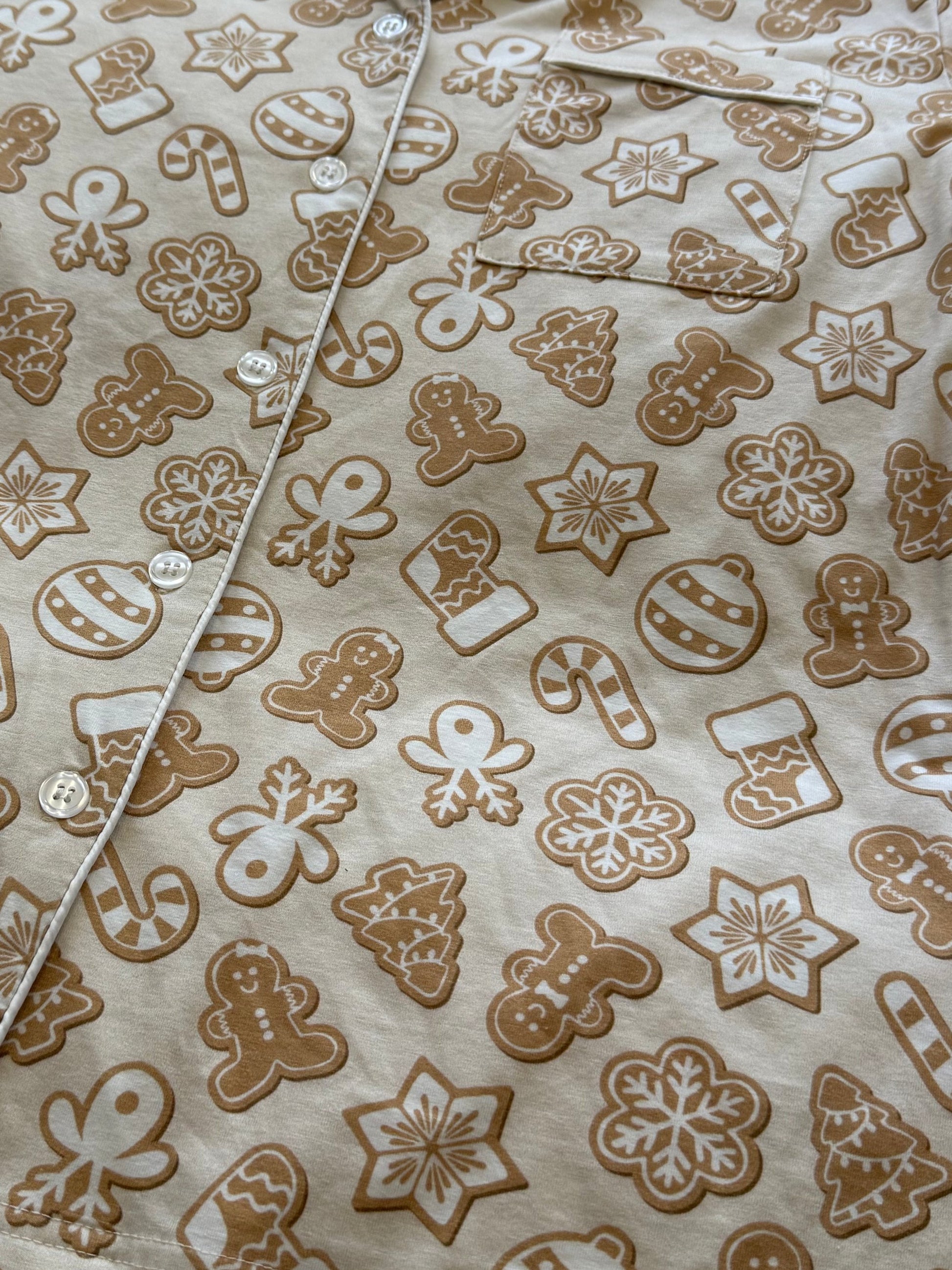 Slip into the holiday spirit with our Gingerbread Dreams pyjama set, perfect for snuggling up with loved ones or enjoying quiet nights by the fire.